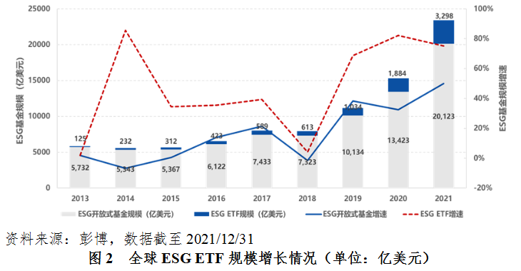 過去(qù)幾年(nián)ESG投資規模快(kuài)速膨脹。全球可(kě)持續投資聯盟(GSIA)報(bào)告顯示,ESG整合策略取代負面剔除策略成為(wèi)全球範圍內(nèi)采"用(yòng)最多(duō)的(de)投資策略。ESG ETF作(zuò)為(wèi)參與ESG投資重要(yào)工(gōng)具,獲得(de)投資者廣泛青睐。根據彭博數(shù)據統計(jì),截至2021年(nián)底,全球ESG ETF資産規模達到(dào)3298億美(měi)元,同比增長(cháng)92%₽。歐洲仍是(shì)全球ESG ETF增長(cháng)引擎,2021年(nián)ETF市(shì)場(chǎng)超過50%的(de)資金(jīn)流入可(kě)持續投$資領域。美(měi)國(guó)ESG ETF緊随其後,在SmartBeta型ESG ETF中,2020年(nián)來(lái)新發産品數(shù)量占比近(jìn)半。