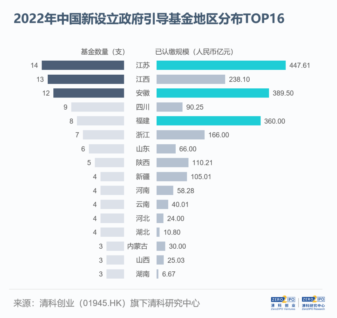 從(cóng)各省表現(xiàn)來(lái)看(kàn),《報(bào)告》顯示,2022年(nián)江蘇省新設立的(de)政府引導基金(jīn)數(shù)量最多(duō),共計(j∞ì)14支,江西(xī)和(hé)安徽緊随其後,分(fēn)别為(wèi)13支和(hé)12支。從(cóng)已認繳規模來(lái✘)看(kàn),江蘇、安徽和(hé)福建包攬前三名,分(fēn)别為(wèi)447.61億元、389.5億元、360億元。